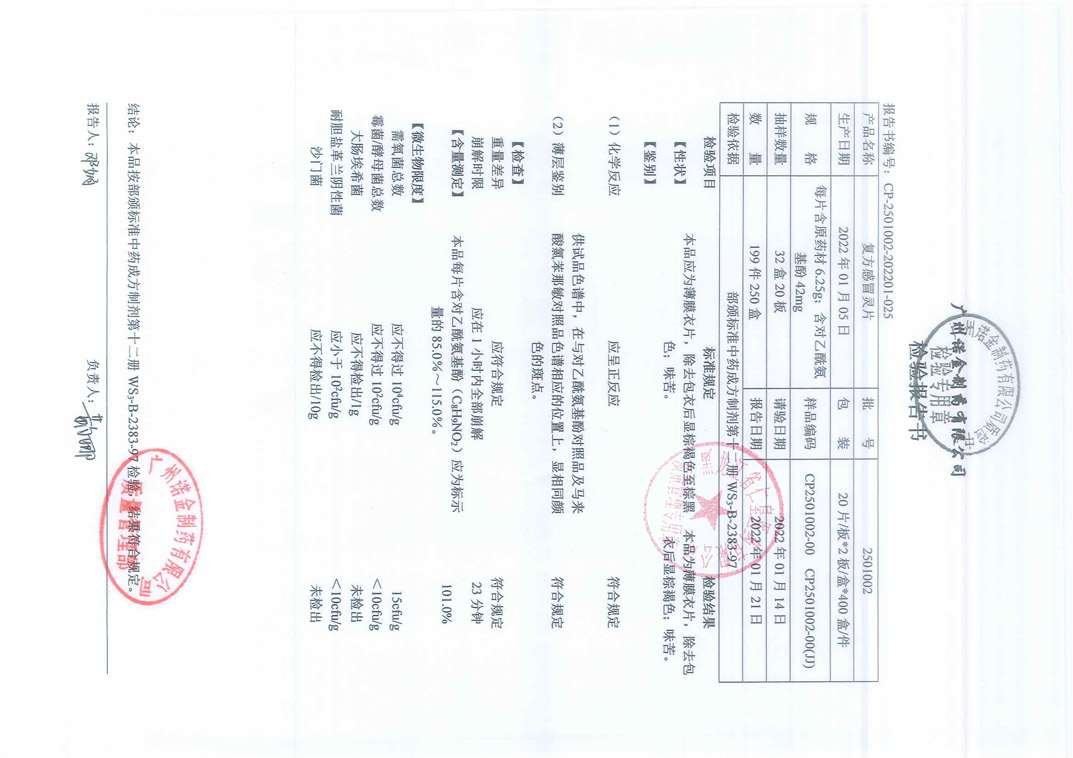 復(fù)方感冒靈片2501
