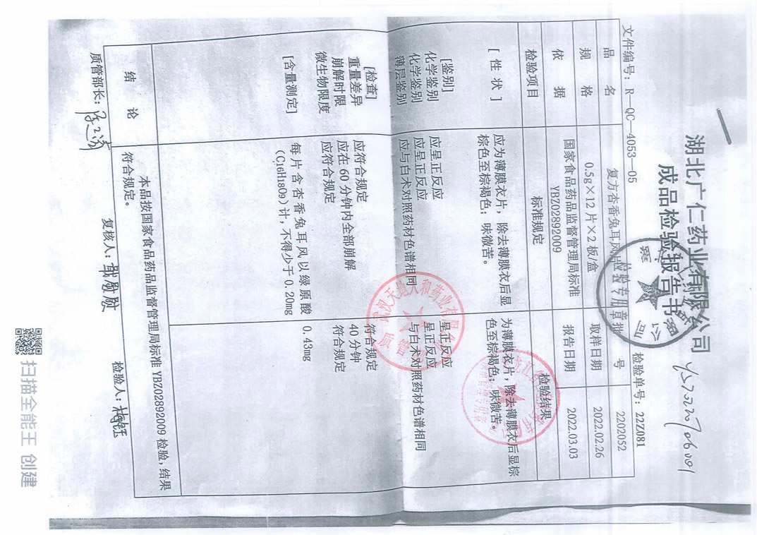 復(fù)方杏香兔耳風(fēng)片22