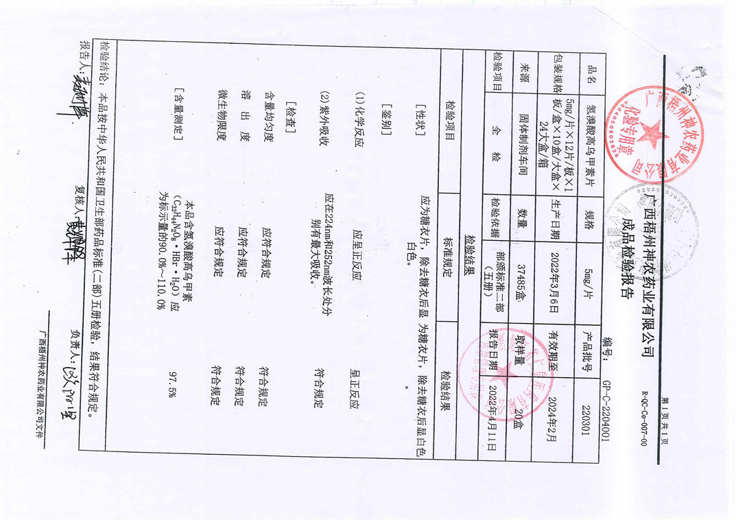 氫溴酸高烏甲素片22