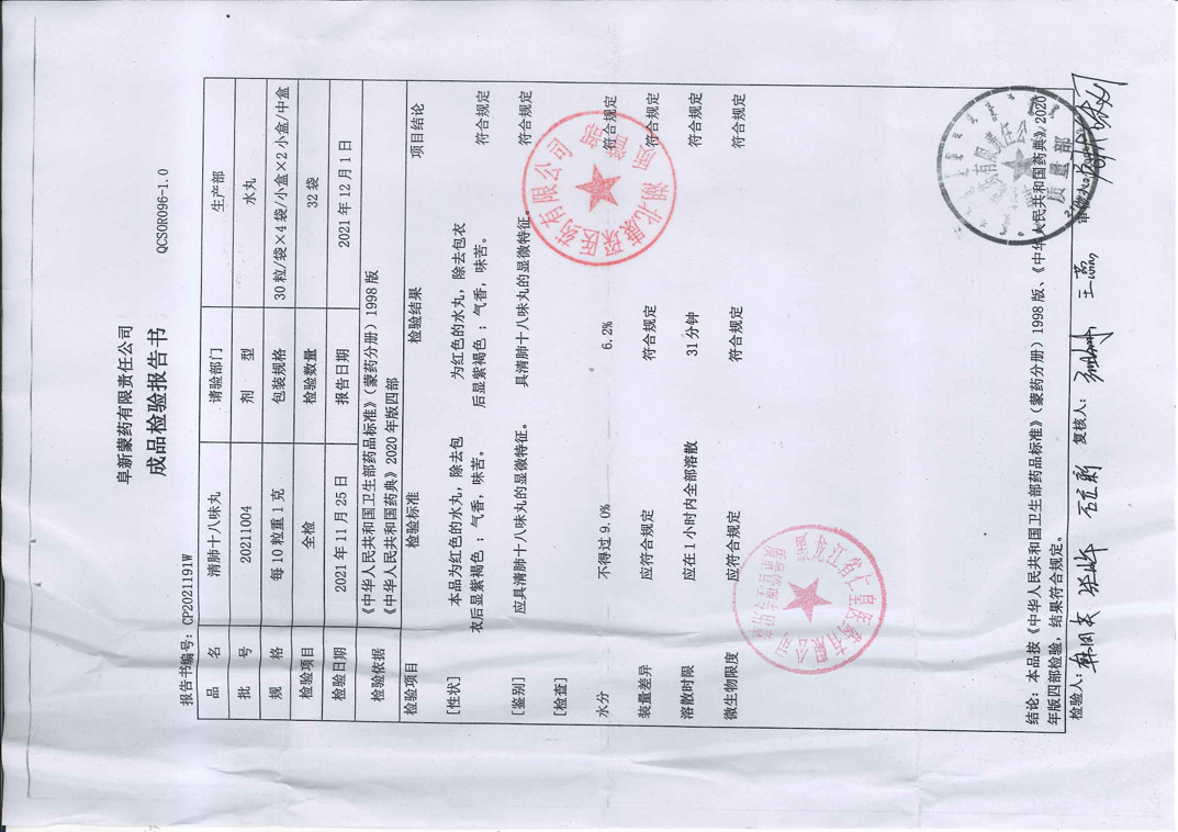 清肺十八味丸2021