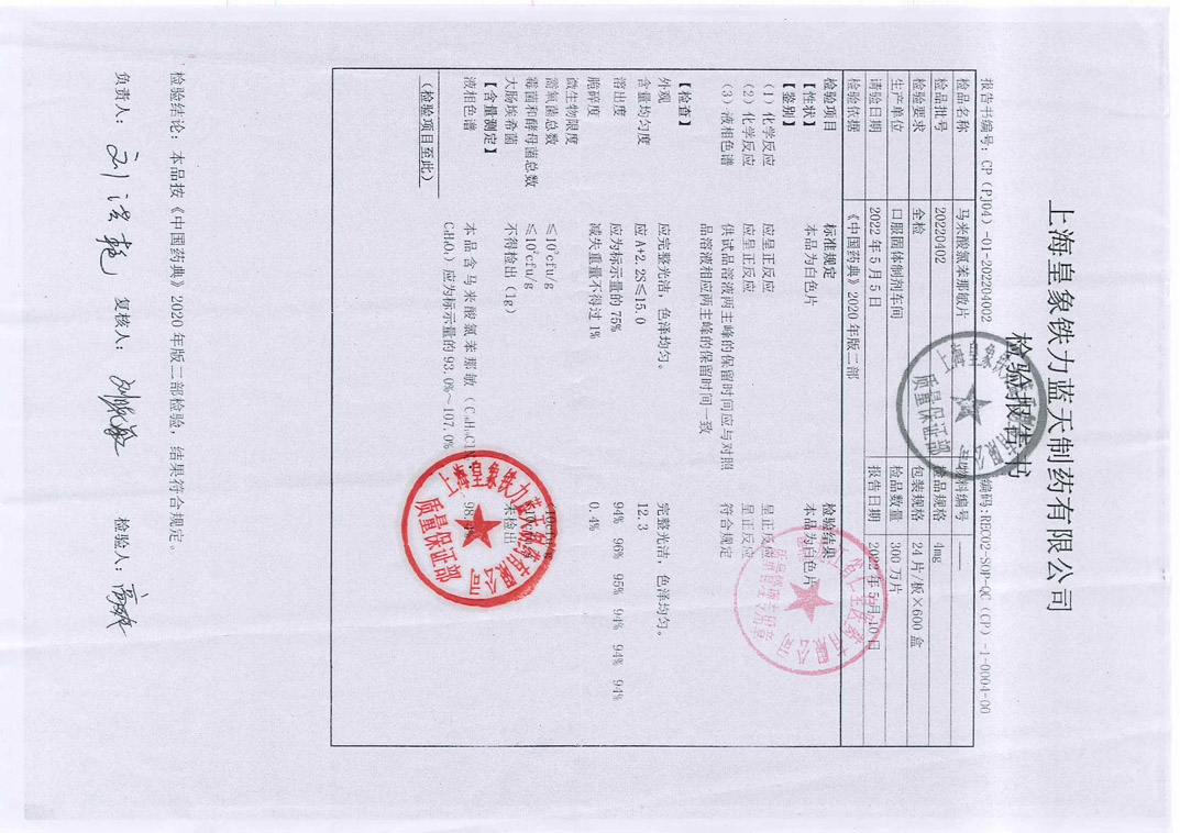 馬來酸氯苯那敏片20