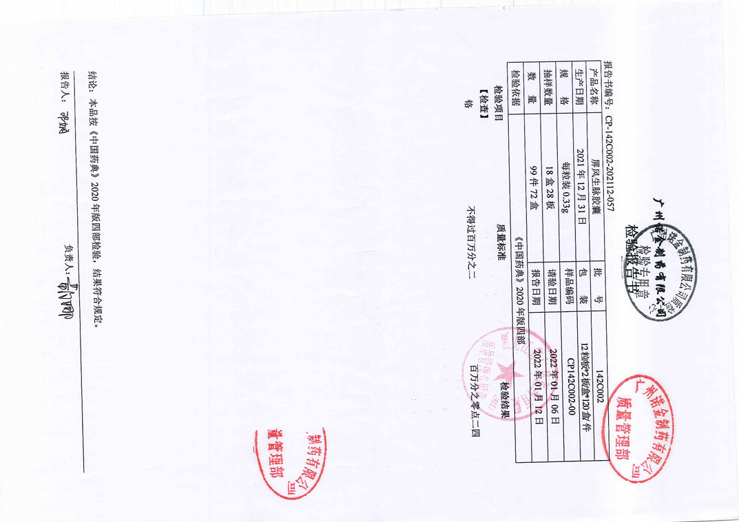 屏風(fēng)生脈膠囊142C