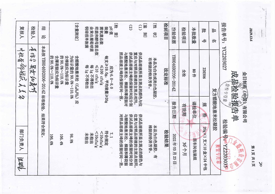復(fù)方醋酸地塞米松凝膠