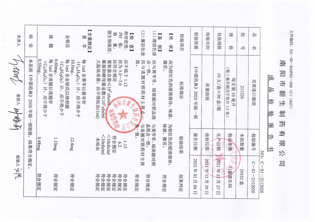 雙黃連口服液2112