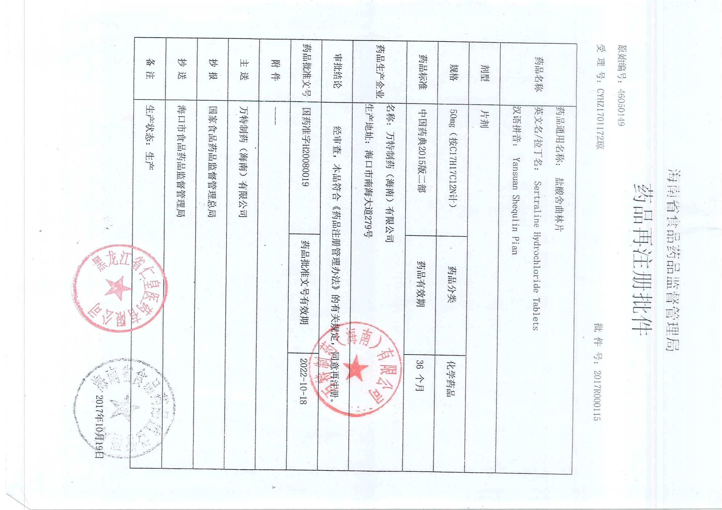 _鹽酸舍曲林片萬(wàn)特制