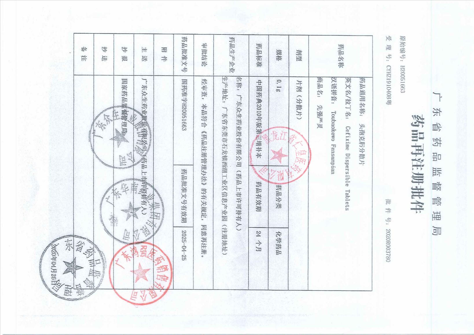 頭孢克肟分散片廣東華